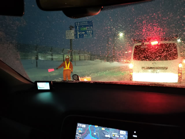 こんな狭い道でそんなデカいトラック動かなかったら何も進まないよ。😖 郡山から帰宅するのに3時間も掛かりましたよ。 それから、関東ナンバーで、渋滞しているソコでチェーン付けてる奴は会津出禁な😡。