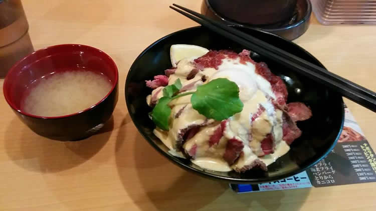 んと、今日は色々迷って、肉山「ローストビーフ丼」並盛。 旨いんだけど、次は大盛りにしたる。