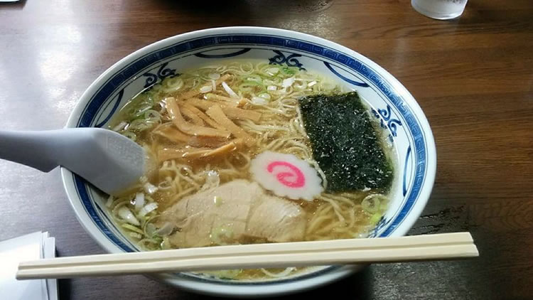 とっても澄んだスープに細い縮れ麺が絡んで、あっと言う間に完食です。