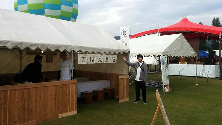メインステージ脇のごはん食堂は、西会津で一番美味しい米をその場で食べさせてくれるという優れもの。