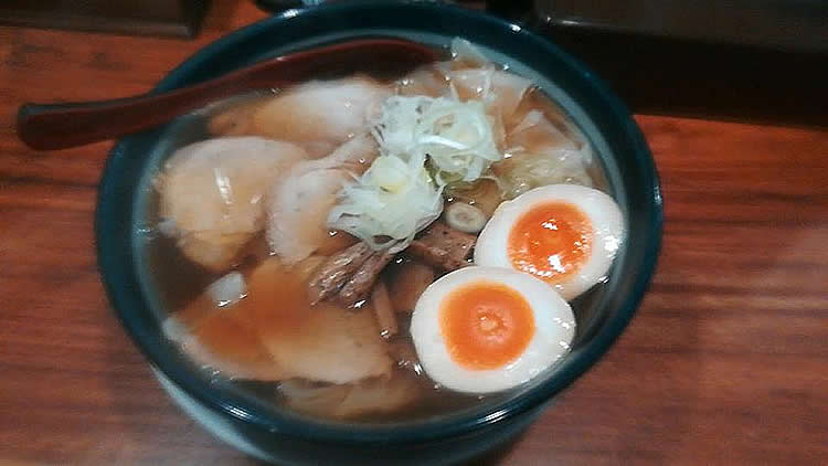 仙台出張は満月のワンタン麺(煮玉子入り)。