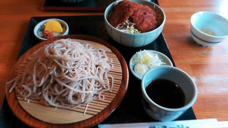 今日は寒の戻りのような春分の日でしたが、息子と昼食で猪苗代の「ラ・ネージュ」へ。 休日は開店前は長蛇の列の場合が多いのですが、今日は3組目でスムーズに入店です。 来る前は「ここのところ食べ過ぎだから、セーブして盛り蕎麦だけにしよう」と思っているのですが、寒い店外で10分も並ぶと決心があっという間に崩れてミニソースカツ丼とのセット。 だって、ここの盛り蕎麦は700円なのに、ミニソースカツ丼(ミニというよりソースカツ丼(小)位の迫力があります)付が1,100円というコストパフォーマンスの良さなんです。 これは私なりの食べ方があって、 ・ワサビはツユに溶かずに、蕎麦に直接載せて頂きます。 ・葱は蕎麦の時には用いずに、蕎麦を食べ終わって、ツユを半分ほど湯呑に移して残ったツユに葱を入れて、熱い蕎麦湯を注ぎます。 ・上記を楽しみながらカツ丼を頂きます。 ・カツ丼は最後にタクアン半切れで、カツとご飯を頂いてフィニッシュ。 問題は「蕎麦味噌」を残してしまうんです。 クルマで無ければ、最初に蕎麦味噌をアテに酒を二合頂ければ完璧なんですが。。。