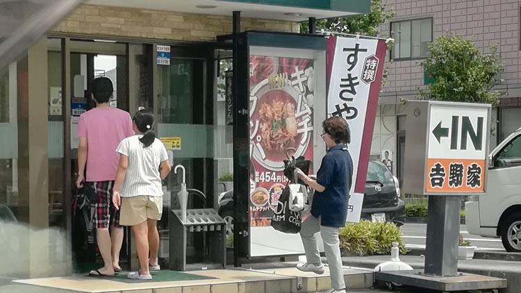 【吉牛にて】 クルマが何とか走れるようになって、会社に戻る途中。 ロードサイドに吉野家。 なんか「特撰すきやき重」とかができたらしく、品切れ続出らしいです。限定品らしいので誘われるままに左にハンドル切って入店。 「特撰すきやき重ください。」と言ったら「午前11時からその日の食材がなくなるまで販売」する方式に変更になったそうな。。。(ちなみにその時10:45位) 仕方が無いので「塩鯖定食」食べて帰りました。「すき焼きが塩鯖?」と思われた方、実は今夕、豚しゃぶしゃぶ大会なのです。「じゃあ、最初からすき焼きなど頼むな!」と思われるかもしれませんが、そこは限定品に弱い私。 しかし、しかし、それにも関わらず(食べられない時刻なのに)表にノボリを上げるのは勘弁してほしい。これがあったら「食べられる」と思うじゃないですか。…食べられなかった愚痴でした。(2019.9.3掲載) |