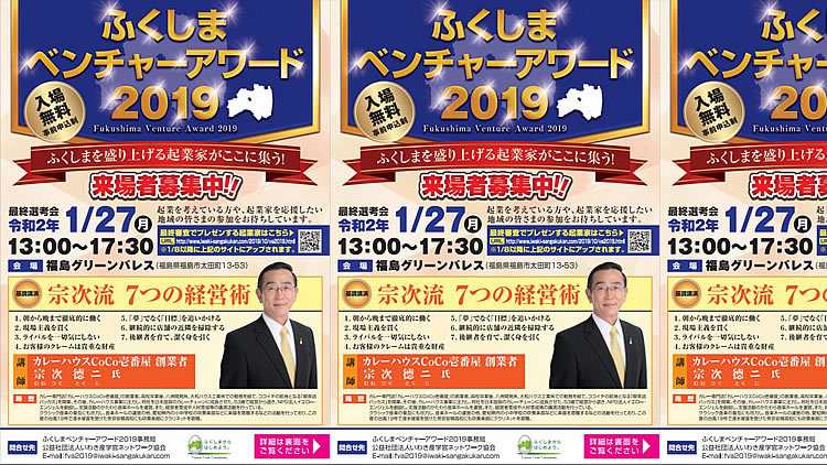 【ビッグネーム】(シェア希望します) 地方に居りますと、なかなか一流の経営者、しかも創業オーナーのお話を聞ける機会は無いのですが、これはチャンスだと思います。 「カレーハウスCoCo壱番屋 創業者の宗次德ニ氏」 先着順で定員がありますが、無料で聴講できます! (福島県の事業ですので、何かを売りつけられる等の心配はありません。) 事業を行っている方も、これから何かを行いたい方も、何か大きなものに触れたい方も是非お申し込みください。 お申し込みはこちらからです。 http://www.iwaki-sangakukan.com/2019/10/va2019.html