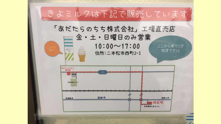 【きよミルク】 1月のふくしまベンチャーアワードで最優秀賞を受賞した「きよミルク」ですが、様々な事情により食べられる場所が限定されてしまいました。 そのことは残念ですが、反対に「ここに行けば必ず食べられる」ということなので、個人的には良いかなと。 オーナーの千葉さんが直接製作してくれるのもファンにとっては嬉しいと思います。 未体験の方は是非体験されてください。 正直、アナタの「ソフトクリーム」の概念が木端微塵になります。