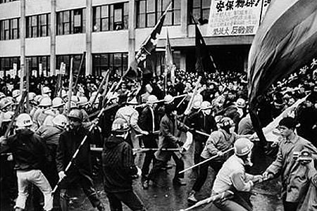 学び舎では…バリケード・ヘルメット・角材がひしめいていた。