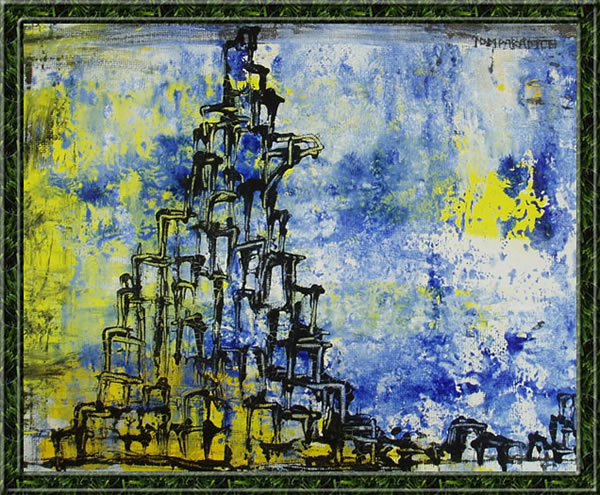 タイトル通り、霧から現れた建物を油を大量に使い描いた 。