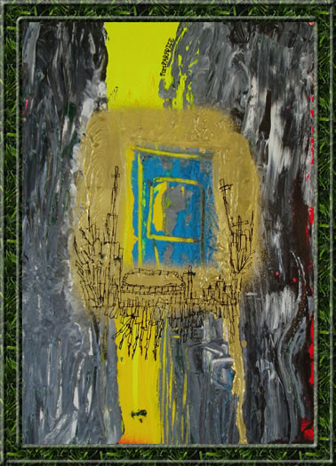 スプレー、ペン、ポスターカラー、油、アクリルを使って描いた。