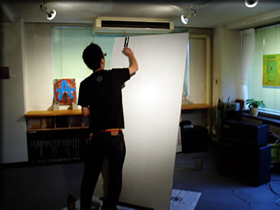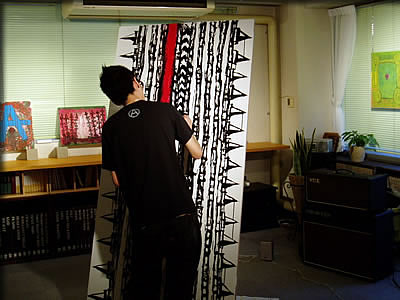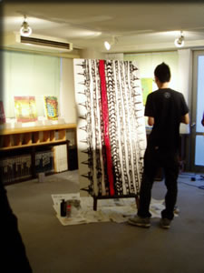 ※2007年11月11日(日)「早坂智也展Ⅲ」初日に、ギャラリー宙で行なったライブペインティングの様子でした。