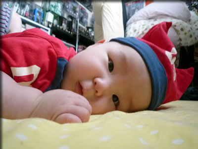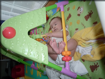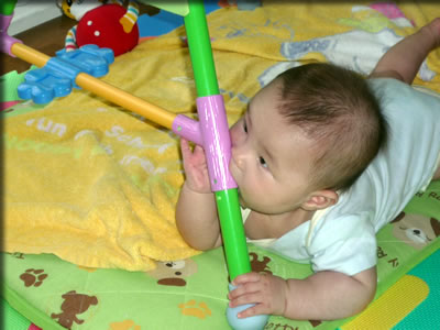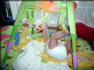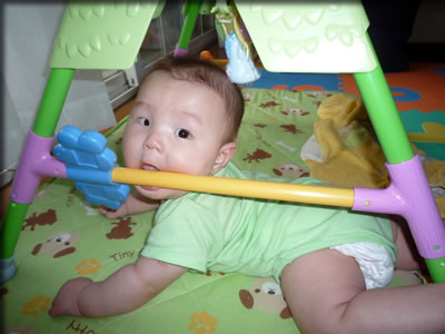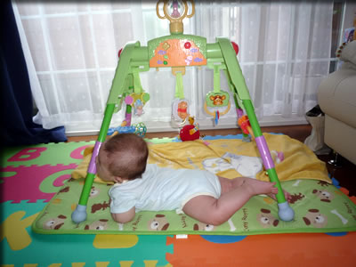 ◆9 あばれてみた 寝返りができるようになったので、 5分もすると飽きちゃって、 メリーから 脱出する 今日このごろ。