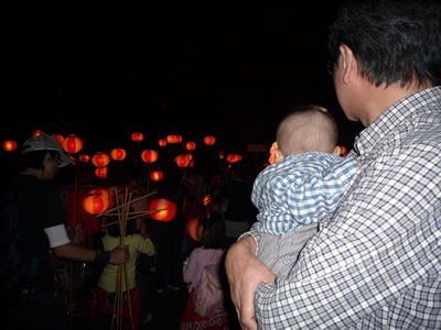 ◆5 ちょうちん行列 よるはダジィといっしょに、ちょうちんぎょうれつにいったんだ! ちょうちんまつりのはじまりあいずの「はなび」にびっくりしたけど。。。 ぼくはないてなんかないよ!! ←真上にあがった花火にギャン泣きでした( ^▽^)