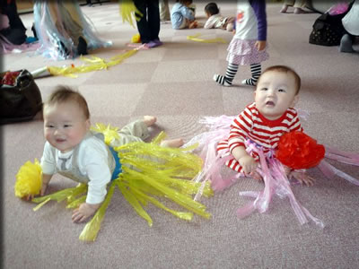 ◆3 フラボーイ お友達のハチさんとこの隆太ちんとひびさんの2ショット。 色白で、よく似てると言われます。 イベントでフラガールならぬ・・・フラボーイになりました。