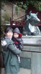 そんごくう? ひびさん。のびろ如意棒。 本当は、これに「きんこじ」と呼ばれる金の輪と、おくつを装備するのだけど、最初嫌がって、つけられなかったのです。 フル装備でなんとか撮影できたものは、ホンモノの写真ができあがったらUPしたいと思います。 このお店でブログがあって、そこに載せるのに、パパ・ママからのメッセージを書いて~と言われたのに、あたしったら・・・