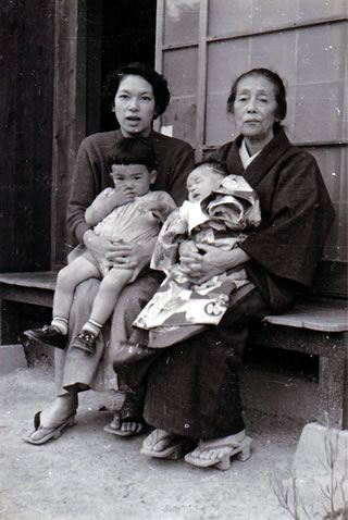 右は祖母と弟、左は母と1歳11か月の筆者(筆者提供)