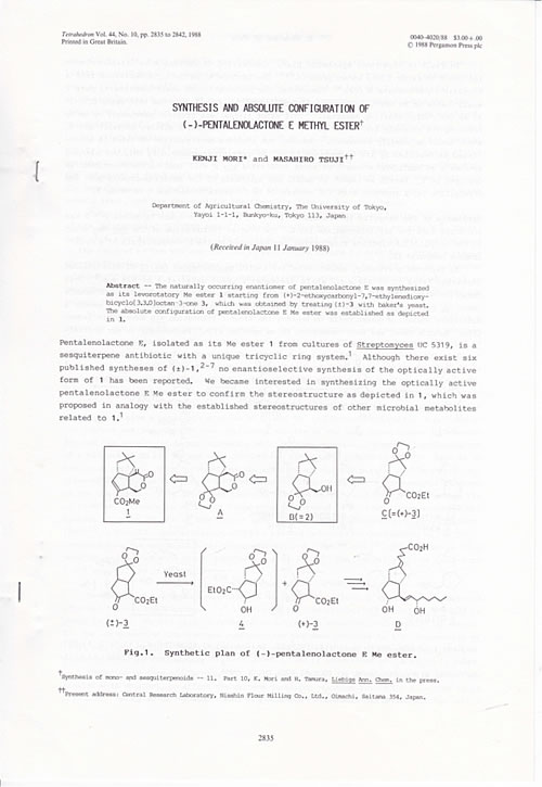 農芸化学には当時研究室が15あり、主流は微生物、生化学、食糧関係などでしたが、それらは覚える事柄が多く私向きではないと思われました。