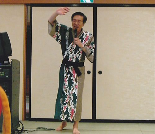 工場長時に社内旅行で「勝手にしやがれ」を歌う筆者(筆者提供)