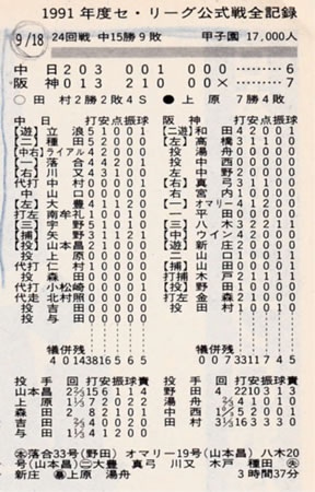 平成3(1991)年9月に5泊6日で神戸での国際ビタミン学会に出張した折には、夜は自由時間ですので、甲子園での阪神-中日戦を観に行ったほどです、単に落合を生で見たくて。