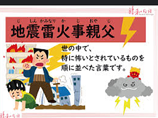 実家の火事のことを書きましたが(雑感 408)、かつては怖いものを4つ並べて「地震・雷・火事・親父」と言ったものです。