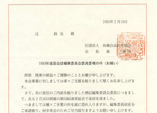 学位を持っている、勤務地(当時は日本橋の本社に勤務)が編集委員会開催の化学会館(お茶の水)に近いという条件に加えて、森先生が「あいつの結婚式では、出来の悪い学生だったが、主賓で精一杯のよいしょスピーチをした。大学院を落ちた奴を学位取得まで指導した。このくらいの恩返しをしてもらってもバチは当たらないだろう」と思ったのか、私に白羽の矢が立ちました。
