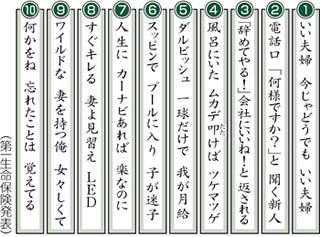 そのメモ帳には1頁1頁に、下の方に川柳が記してありました。それは「第一生命 平成サラリーマン川柳コンクール」の優秀作でした。