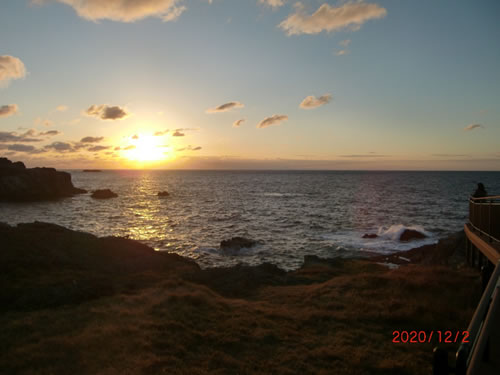 出雲日御碕灯台近くの夕日(昨年12月2日、山陰旅行中に筆者撮影)