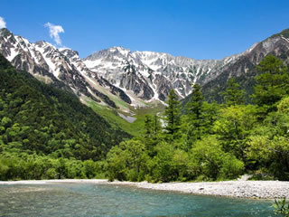 10月なのに雪景色の上高地梓川(筆者撮影)