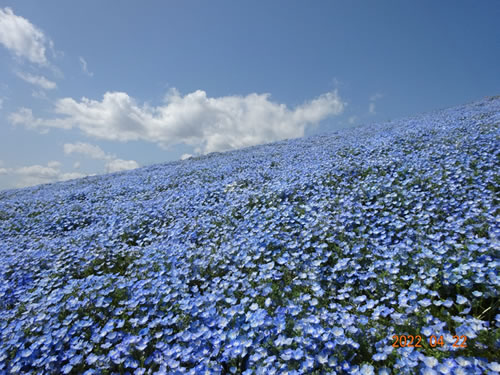 ネモフィラが見頃で、晴れていましたので蒼天と蒼々たるネモフィラの「蒼(あお)の競演」を堪能できました。