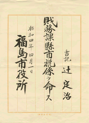 祖父の市役所勤務の時の辞令を見ますと、それなりに立派な紙に毛筆で書かれています。