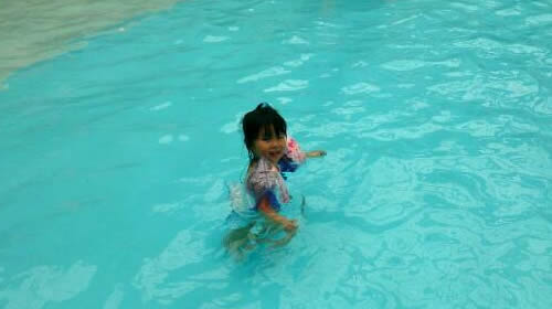 「プールノ、ナカニ...。」