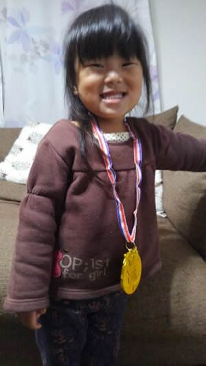 景品や初めての金メダル(みんな金でーす)をもらって嬉しそうでした!