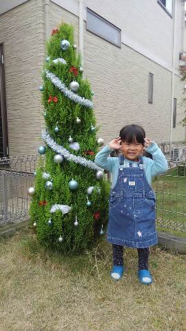 かりんが産まれる前に買って植えた20cm位だった木がようやく..(いや、4年でこんなに成長するか??)ここまで伸びましたので飾り付け(^^)