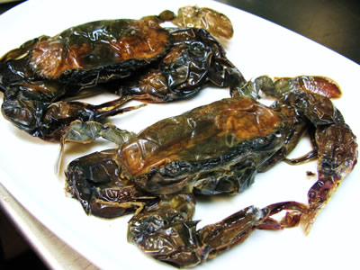 香ばしく柔らかい殻が付いたままの蟹、それはそれはおいしいです!