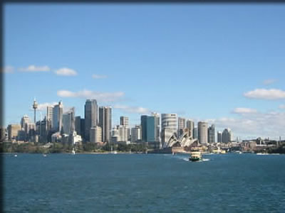 左にシドニータワー、中央右寄りにオペラハウスが見えます。