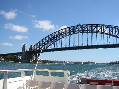 ハーバーブリッジの下を通ってまた別の船着き場でお客を乗せて、その後はオペラハウスの横の「サーキュラーキー」までノンストップ。