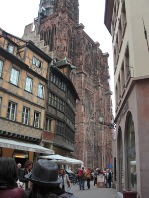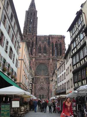 街のほぼ真ん中に突然現れた、ストラスブールのノートルダム大聖堂。