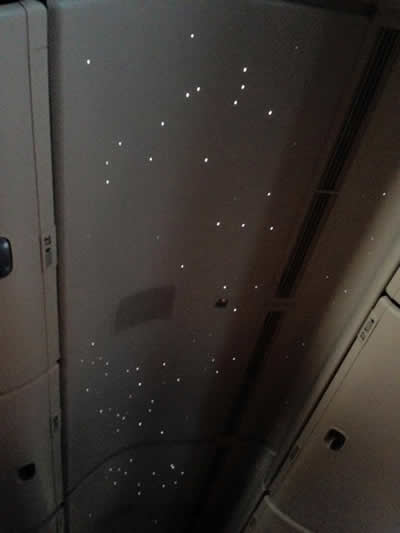 おそらく旅の徒然に、星空を投影した航空会社の演出だと思います。
