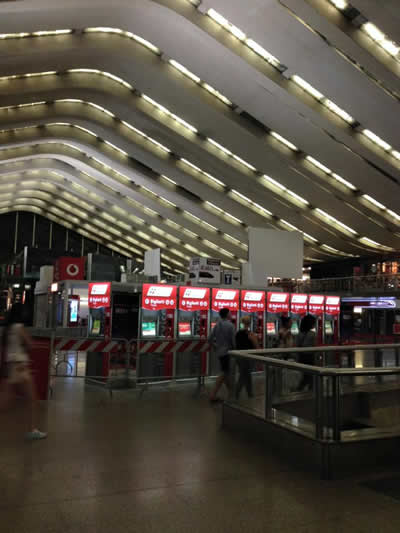 テルミニ駅は、やはり、このユニークな天蓋の形が特徴かな。赤く見えているのは自動切符販売機。