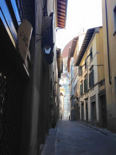 ということで、早速、街並みから大聖堂(ドゥオーモ)が見えてきた…。