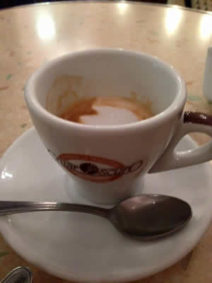 Un caffè lungo è un po' latte , pre favore と初めイタリア語でオーダーして見ました。ロングブラックって、メチャ少ない。カフェラッテはミルクの量が多いので飲めない私。ロングブラックに少しミルクを入れてくださいと、言ってみた。