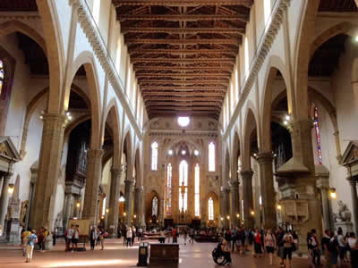 教会の中央礼拝堂。ここには、ガリレオやミケランジェロなど有名人のお墓がたくさんあります。