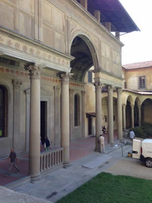 中庭から見たバッツィ家礼拝堂。敷地内にはたくさんの礼拝堂があります。