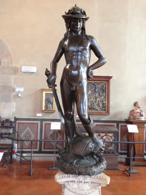 左上はドナテッロ作、右上はヴェロッキオ作 の「ダビデ像」。