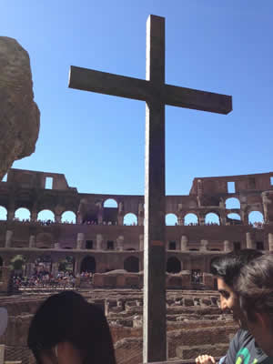 (小笠原)お~、コロッセオだ! 懐かしい! 私もローマの休日で見た時から虜になりました。 初めて見た時はその大きさに圧倒され、鳥肌が立ちました。 ローマ帝国時代のシンボルですよね。
