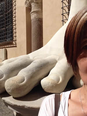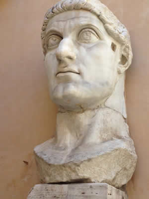 下はコンセルヴァトーリ博物館にある「コンスタンティヌス帝の巨像の頭部」。この隣には「手」もあったはず。