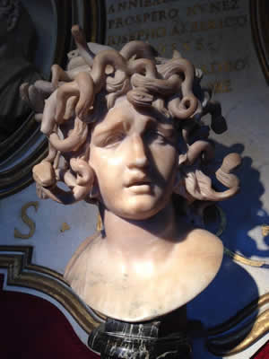 左下↓は、かの有名な「メドゥーサ」、右下は「カピトリーノの雌狼」と呼ばれる作品。