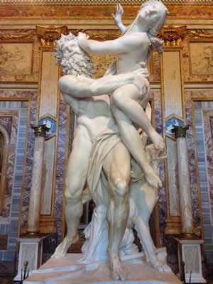 左下↓もおなじベルニーニの作品「プルセルピーナの略奪」。この二つが最も有名かな。プルセルピーナ(プロセルピナ)はギリシャ神話のペルセポネでハーデスの妻、冥府の女王。春の女神としても知られる。あらら、人妻を略奪しちゃったのね(笑)