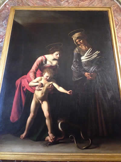ということで、下はボルゲーゼ美術館にあるカラヴァッジョの「聖アンナと聖母子」。1605年の作品。