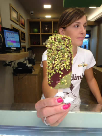アイスキャンデー屋です!3種のチョコ、ダーク、ミルク、ホワイトを選び、ディップしてから、トッピングを選びます。意外と濃厚でした。今度はさっぱり系をオーダーしてみます。😅