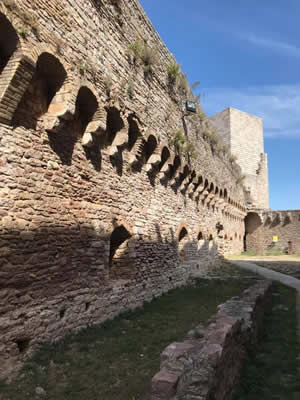 アッシジの北部にあるロッカ・マジョーレを抜けてロッカ・ミノーレへ。聖フランチェスコ洞窟の周りに複雑な建物群がそびえる。