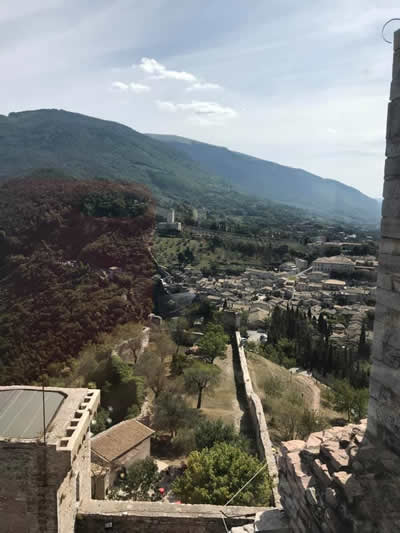 丘の上からの眺めは最高。この建物群は聖フランチェスコが生まれる600年ほど前に建てられたものと言われている。